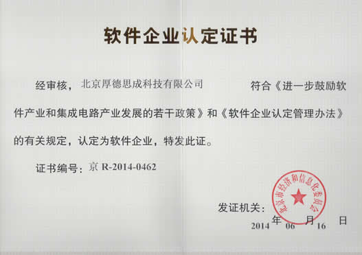 公司成立伊始,即进行了软件企业认证